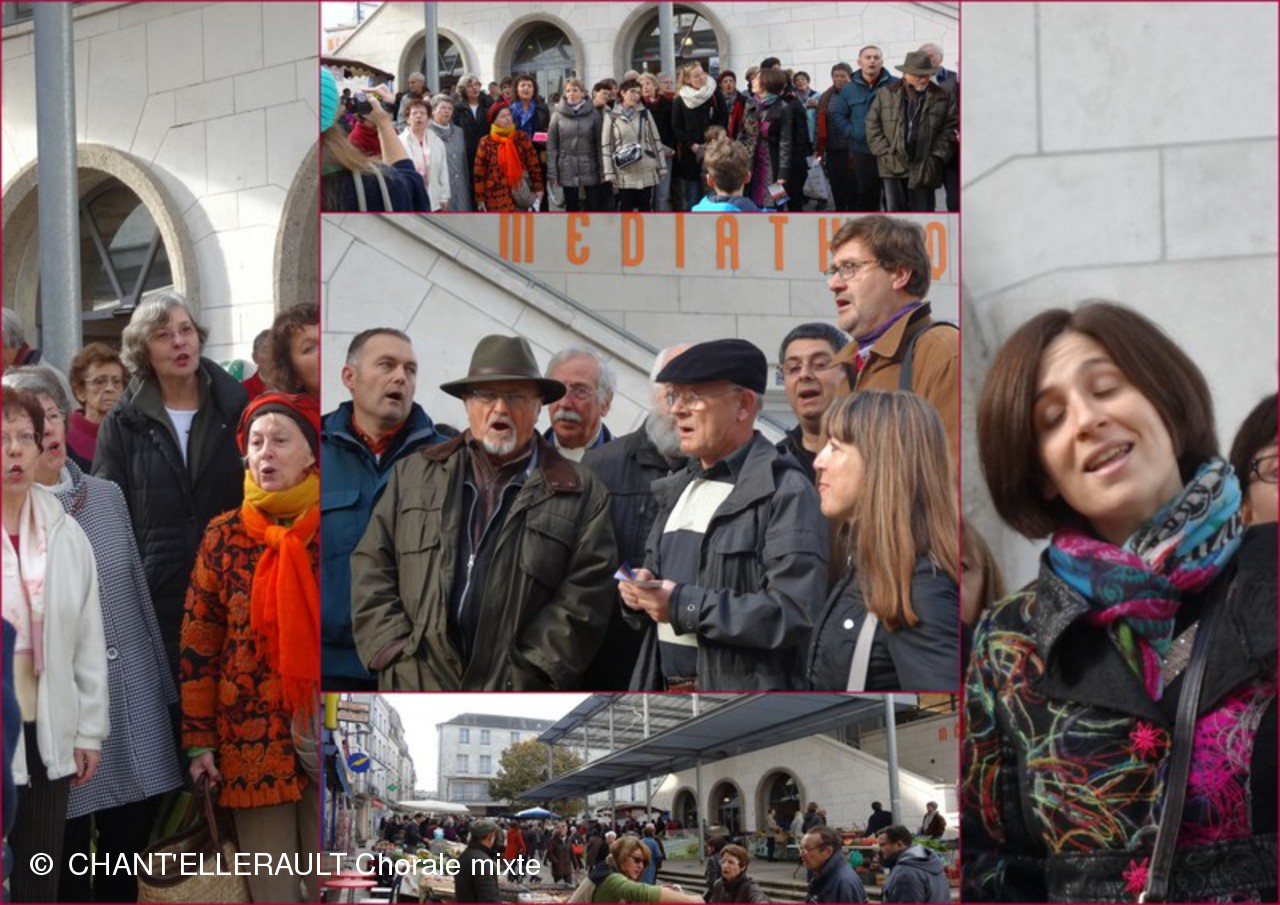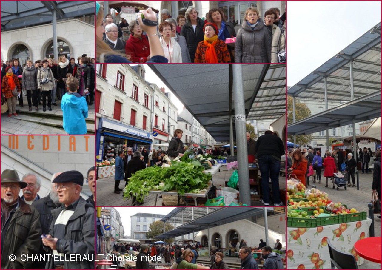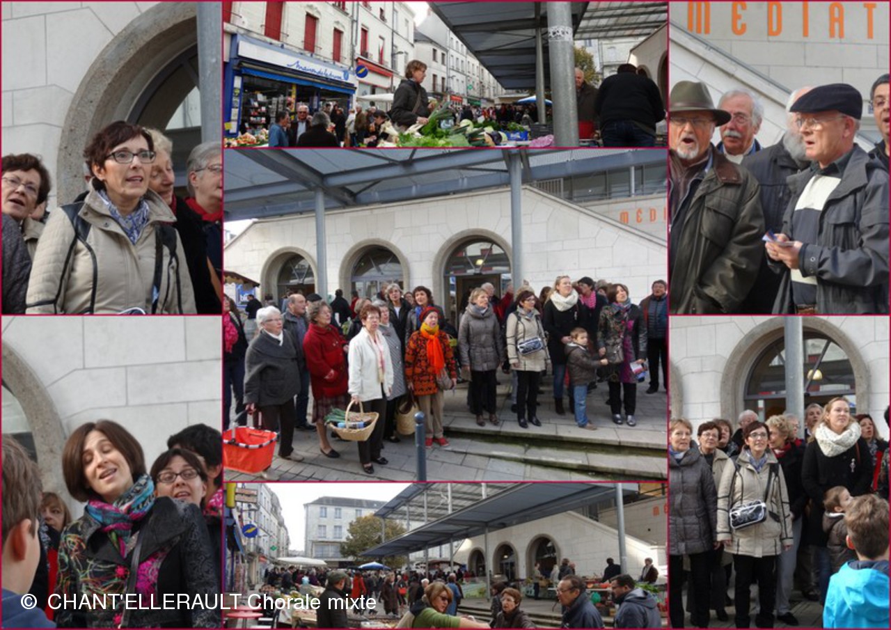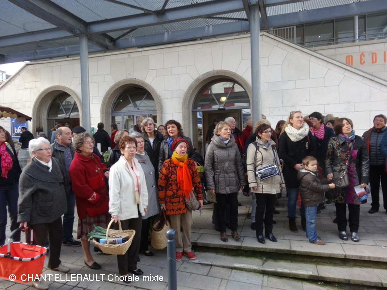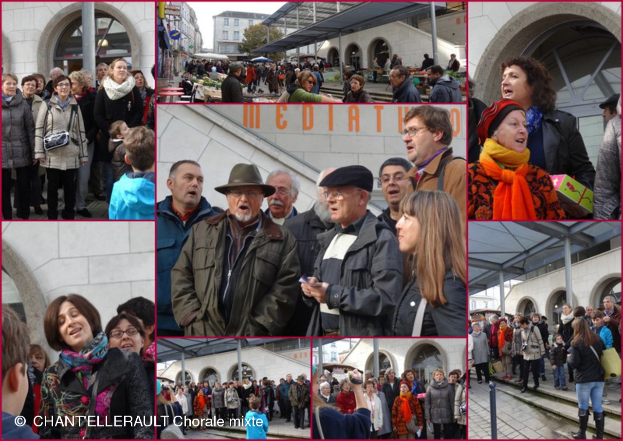 Samedi 22 novembre les choristes se sont retrouvés au marché des halles pour un flashmob. "La cane de Jeanne " et ses coincoins ont retenti 4 fois dans différents endroits.