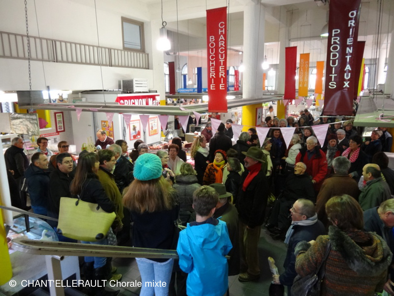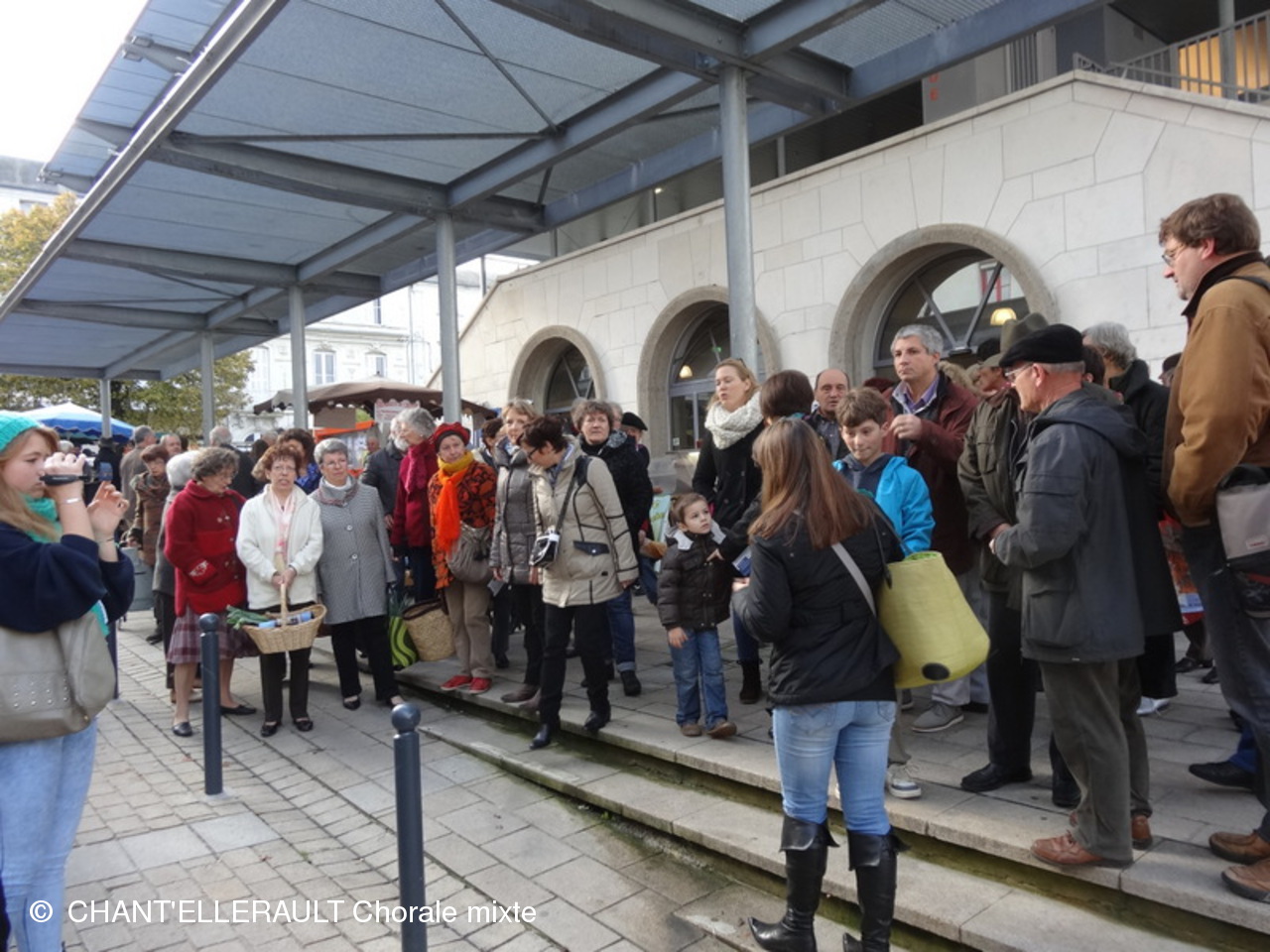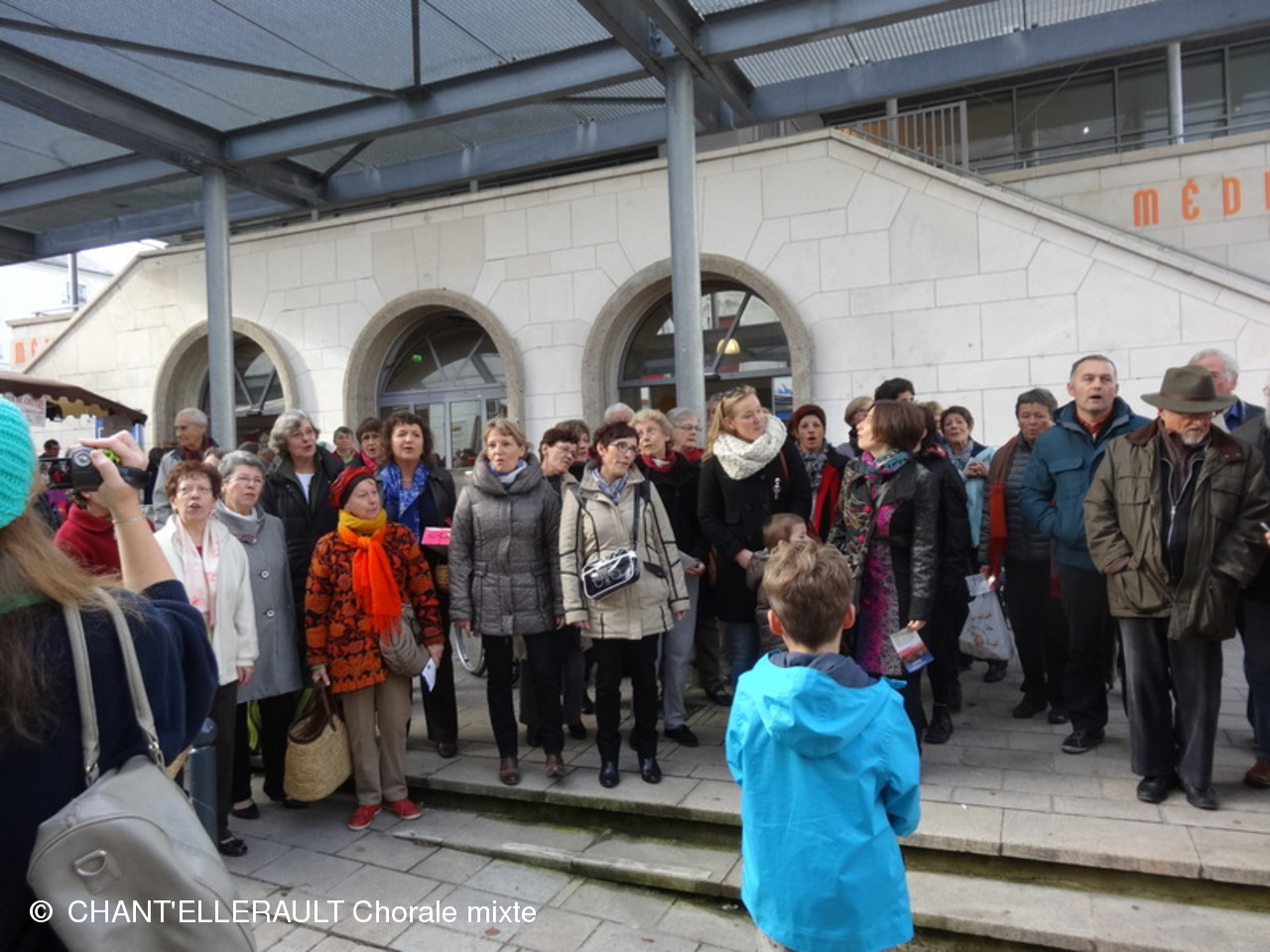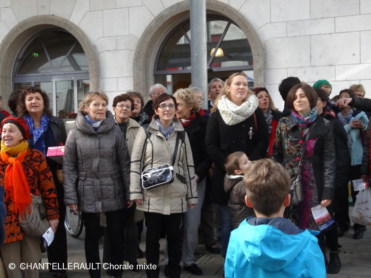Samedi 22 novembre les choristes se sont retrouvés au marché des halles pour un flashmob. "La cane de Jeanne " et ses coincoins ont retenti 4 fois dans différents endroits.